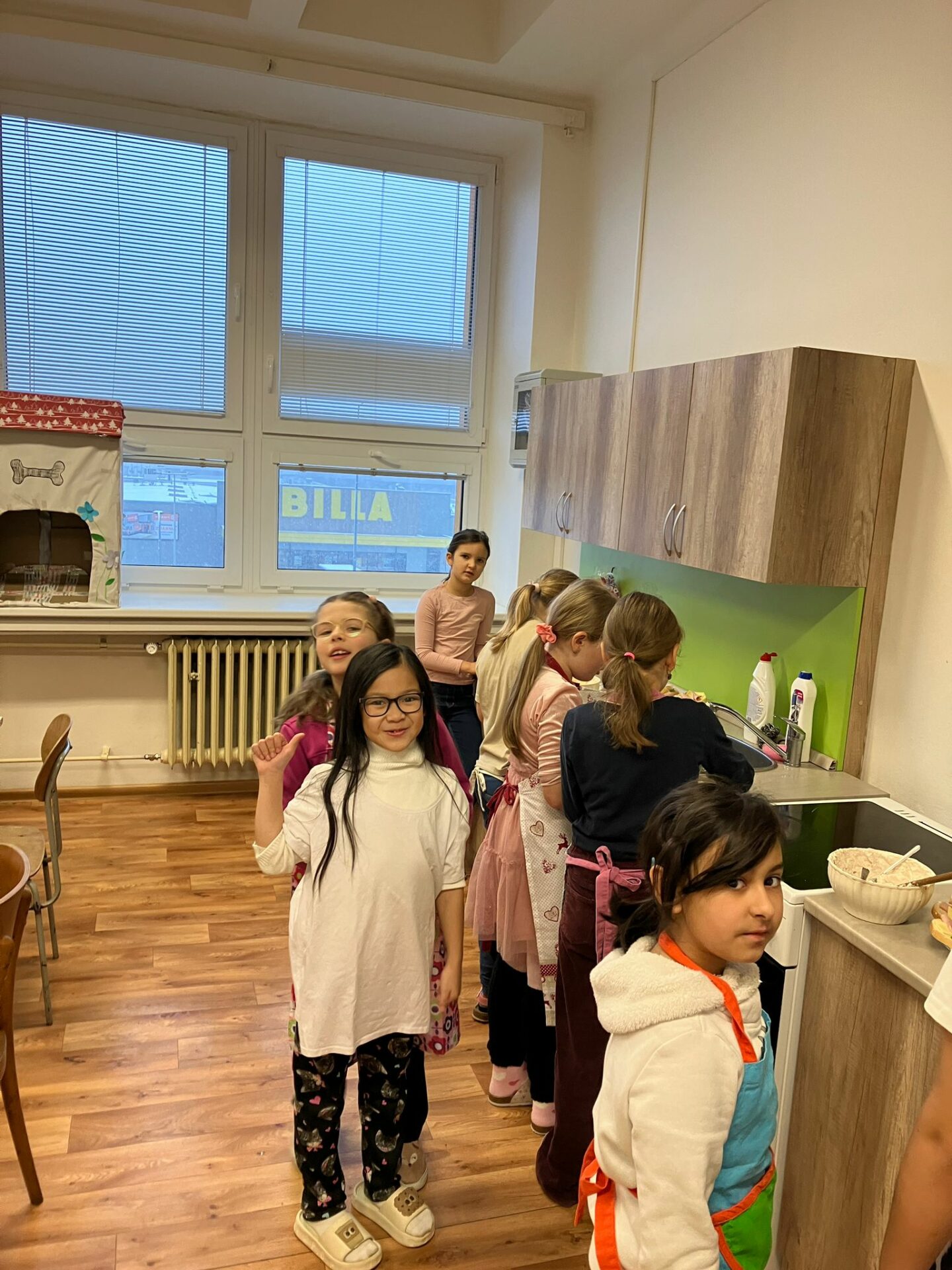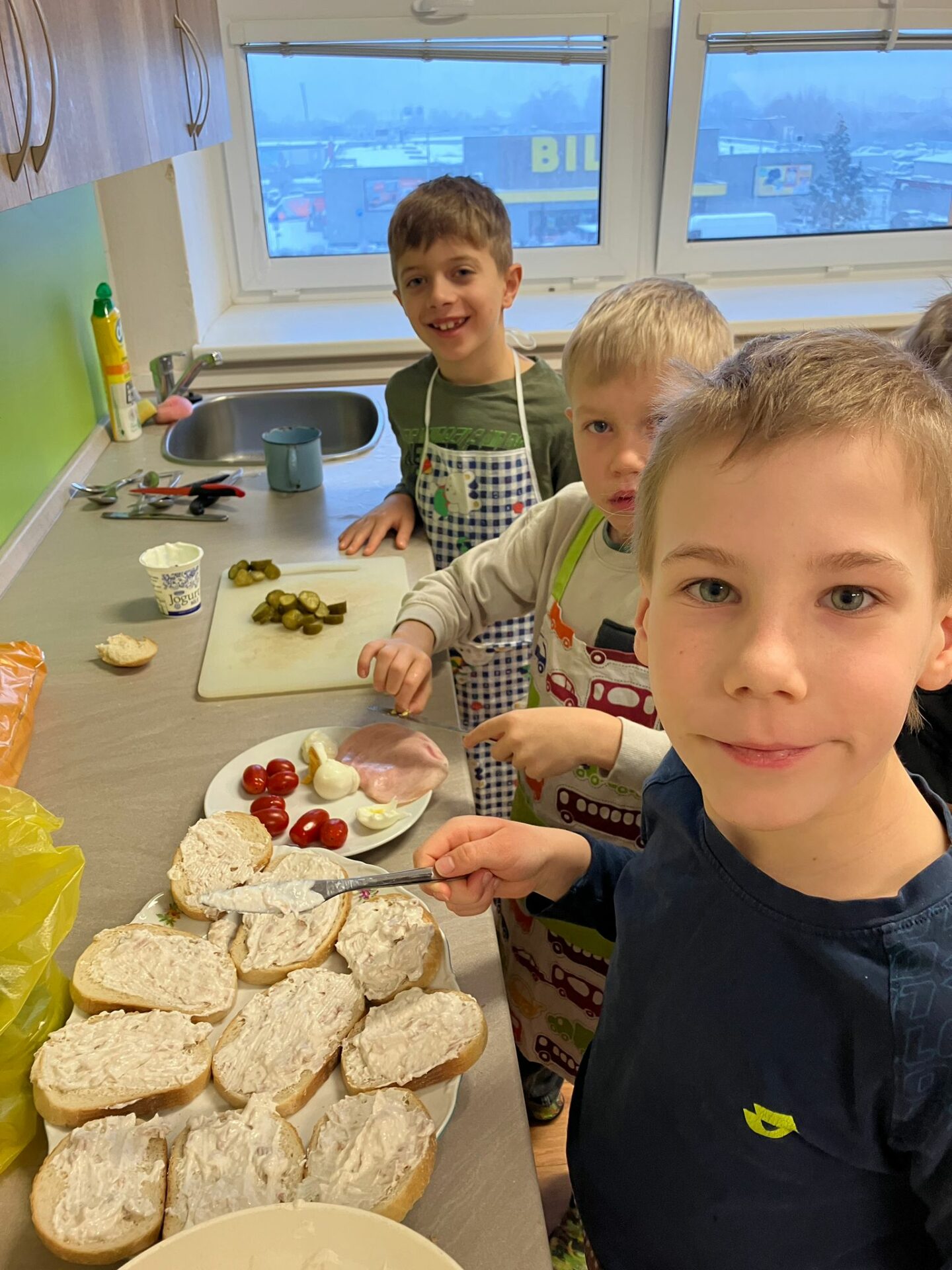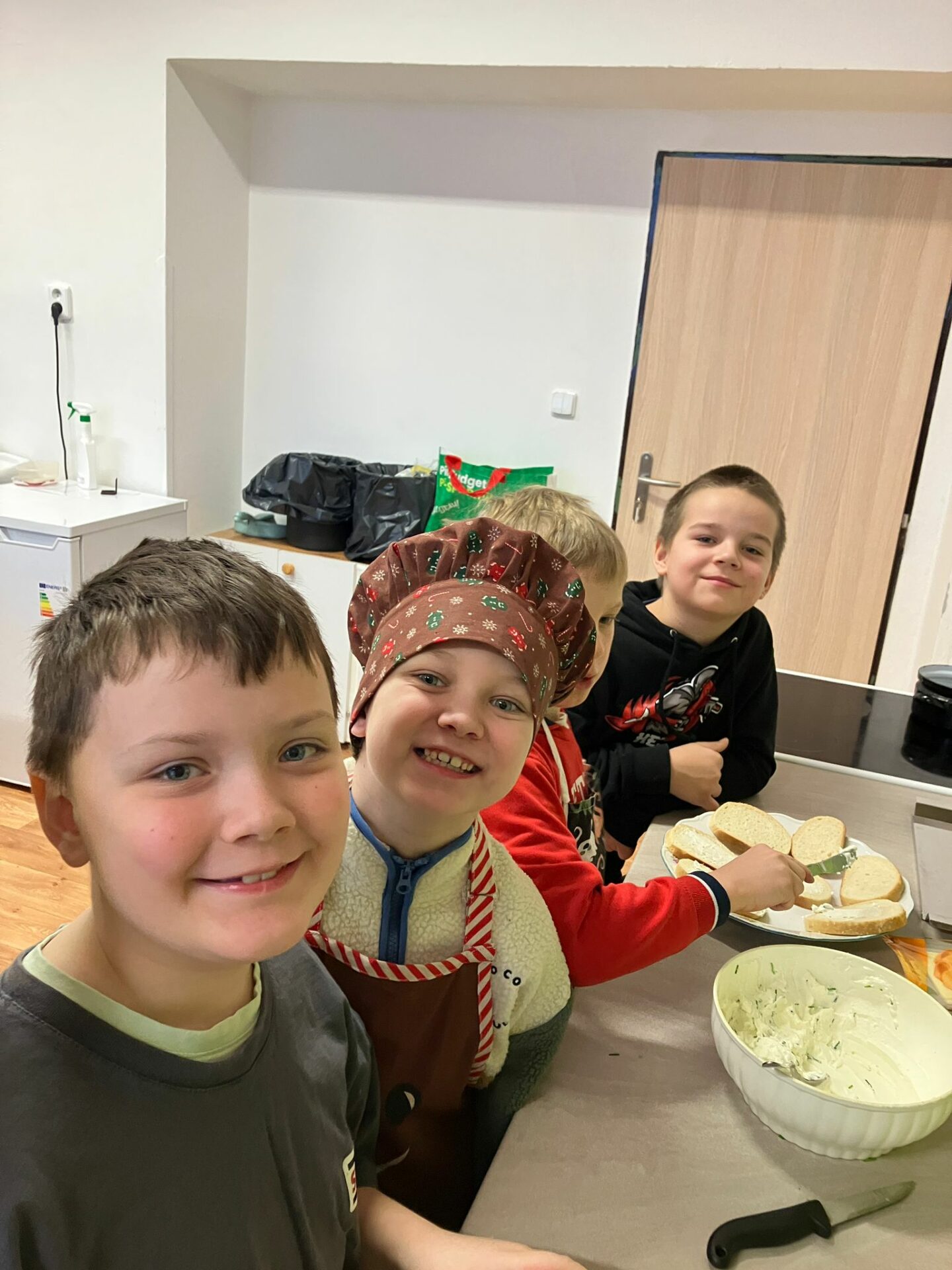 Kluci a dívky z 2. C „vařili“ v naší školní kuchyňce. Mňam to bylo.